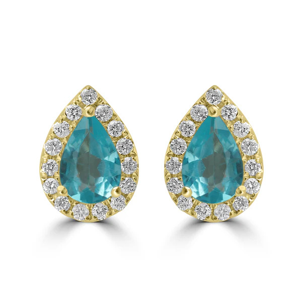Delicate yet vibrant, these 0.81ct apatite earrings sparkle with 0.176ct diamonds, set in 14K yellow gold. A fresh pop of color designed for effortless sophistication.