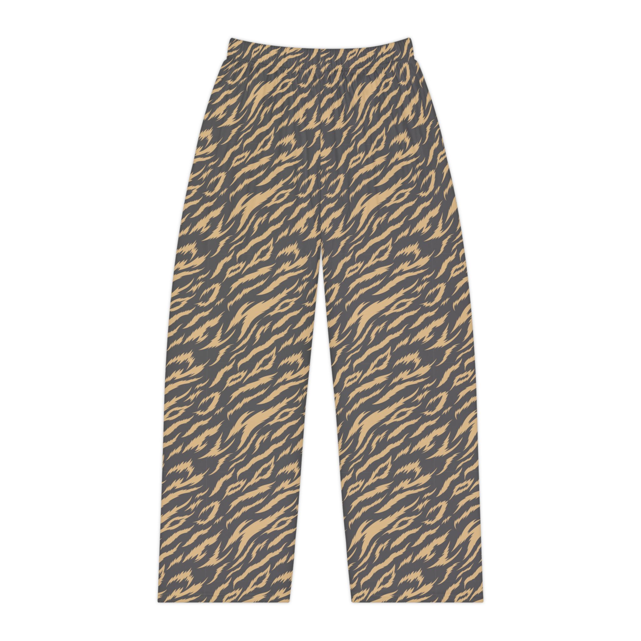 These pajama pants bring late-night comfort and a little wildness to quiet evenings. The lightweight brushed polyester drapes softly and breathes, while the elastic waistband moves with you during restless sleep or lazy mornings. The muted tiger-stripe print adds subtle edge without shouting — imagine sinking into cozy sheets with a hint of playful texture that still reads grown-up and relaxed. Wear them for slow coffee rituals, movie marathons, or to lounge between chores; they become the go-to pair when you want comfort that feels personal and quietly stylish.