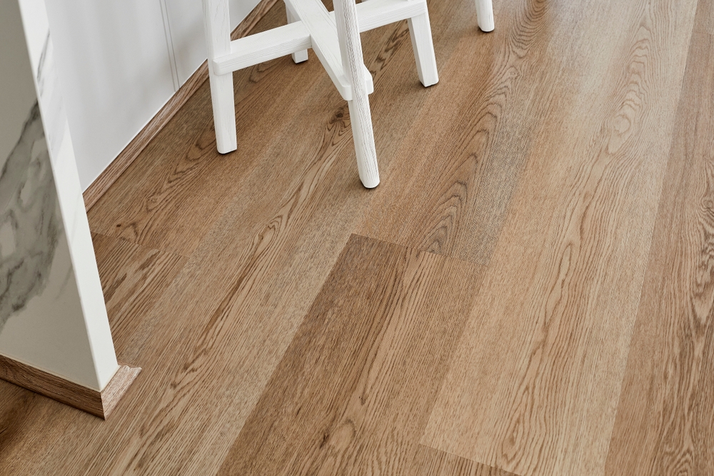 Hybrid flooring material does not experience moisture-based warping like traditional timber flooring does. The product works best for coastal environments because it can function in areas where people experience yearly changes in humidity levels.