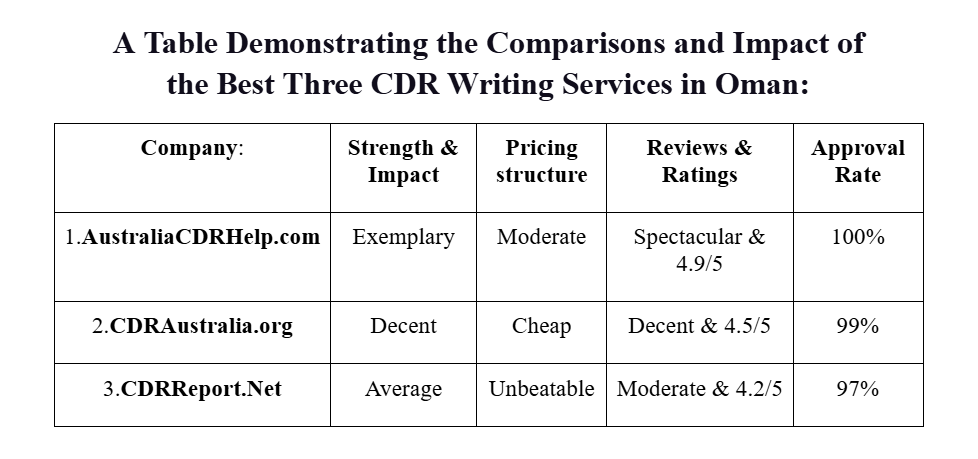 In essence, all these CDR writing services in Oman are outstanding and satisfactory. As they are compared, candidates can choose their own based on their requirements, satisfaction, preferences, budget, and time. Receiving online CDR services in Oman from these helpers assures one’s successful skills assessment.