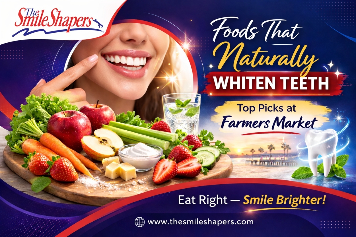 Discover fresh Ventura Farmers Market picks that naturally brighten your smile! From crunchy apples and leafy greens to pineapple enzymes and strawberries, these nutrient-rich local foods help lift surface stains, strengthen enamel, and support better oral health with everyday eating. Explore foods that naturally whiten teeth in Ventura and smile brighter every day.