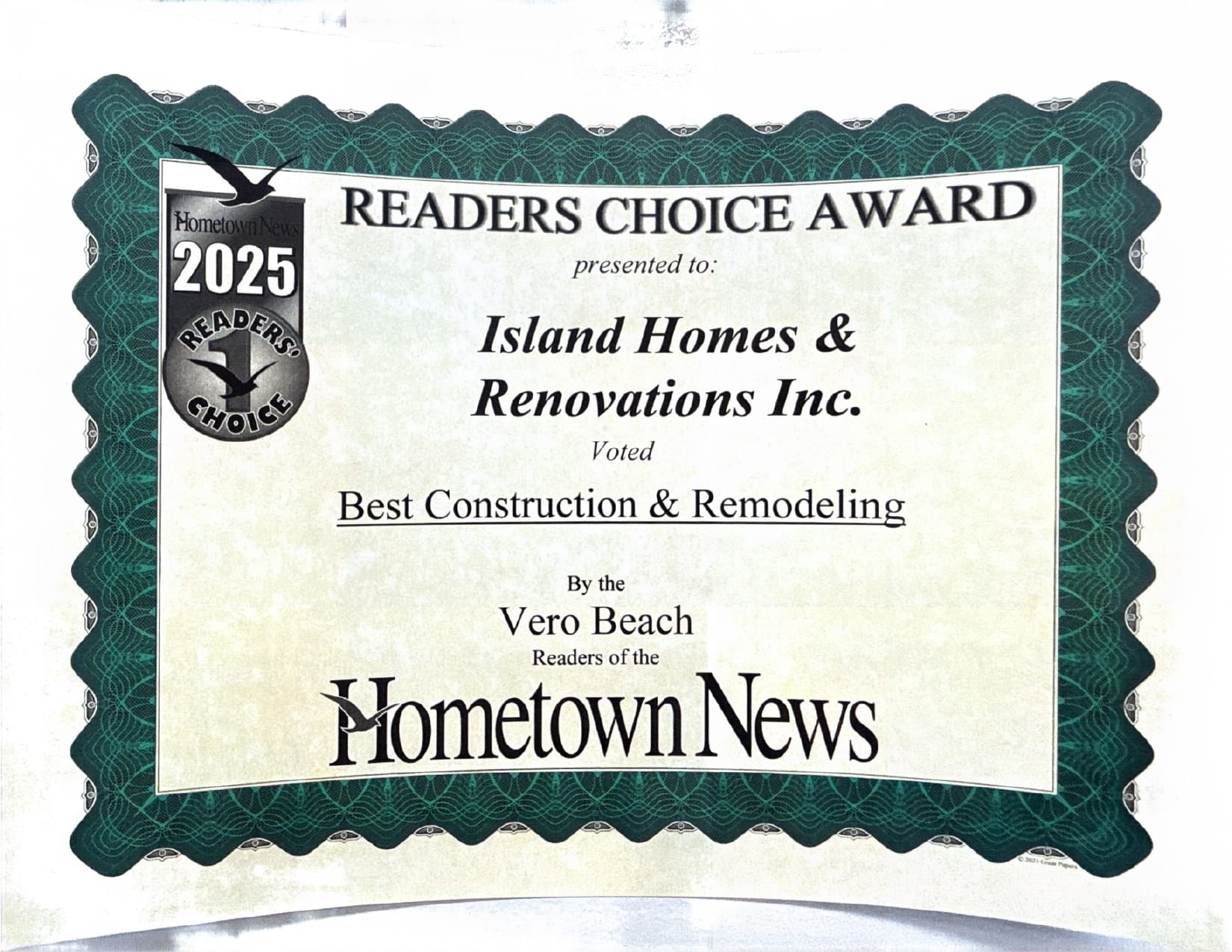 The Best of “Business Rate” 2025 award recognizes businesses that consistently demonstrate excellence in workmanship, reliability, and customer satisfaction within their industry. Meanwhile, the Hometown News Readers’ Choice Award is especially meaningful, as it represents direct recognition from local homeowners who trust Island Homes & Renovations for their most important renovation projects. Together, these honors highlight both professional credibility and strong community support.