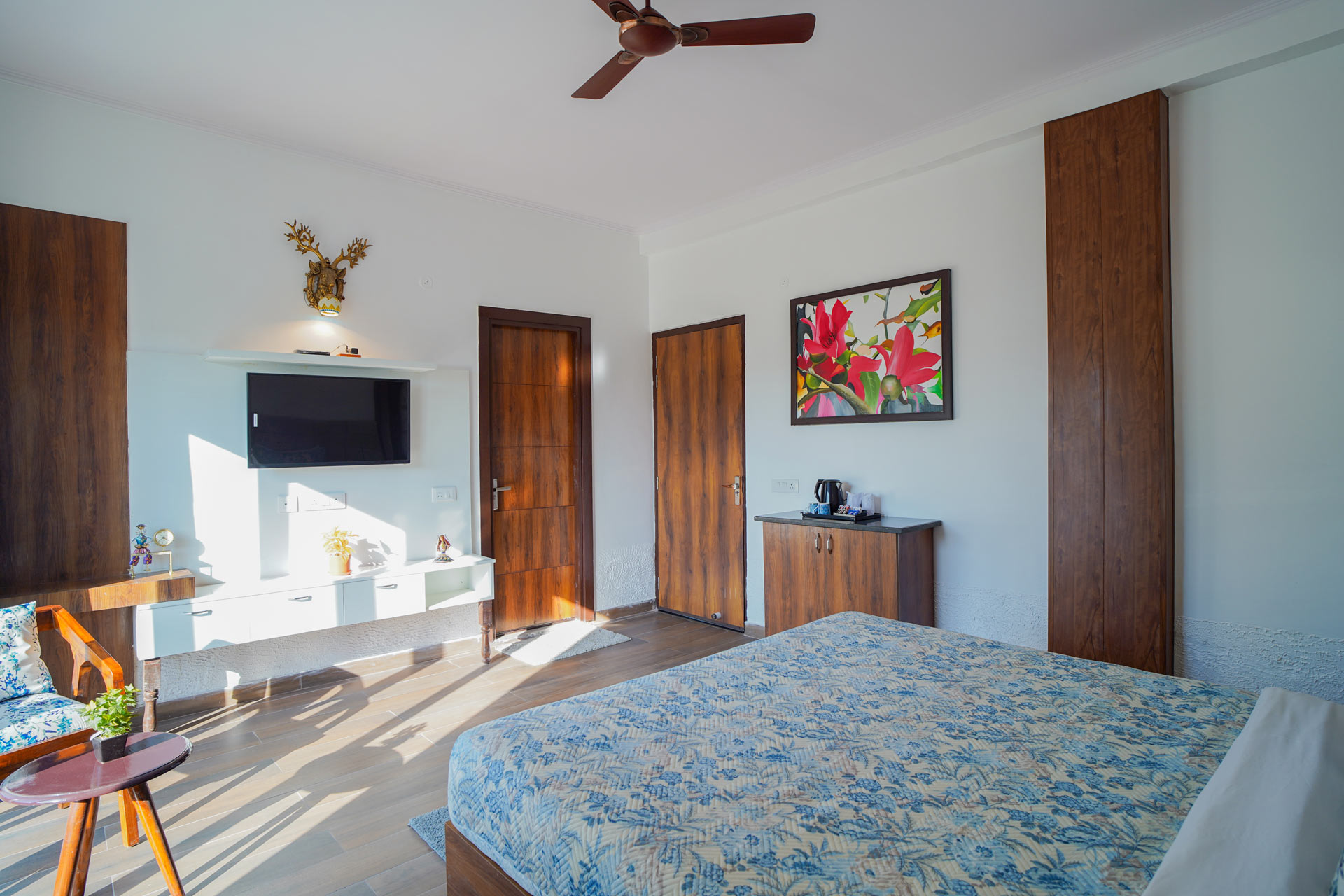 Hriday Bhoomi Resort offers various well-appointed rooms and cottages in Jim Corbett that blend modern luxury with the natural beauty of the area. Each unit features: